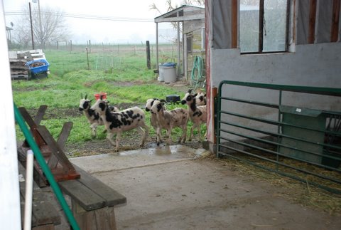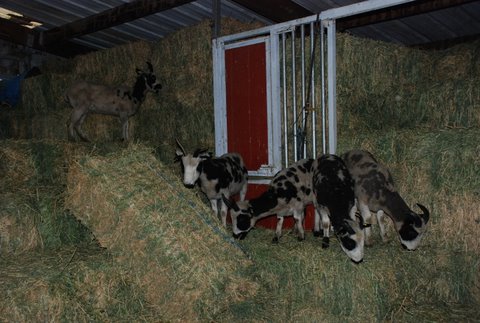 1. Well, they are certainly acting like goats! I made Rusty go up to get around the one on the top and she threatened him and he jumped off. I had to shoo them off the hay. Three of these sheep had been getting out every day and they knew where the hay was and headed right there.