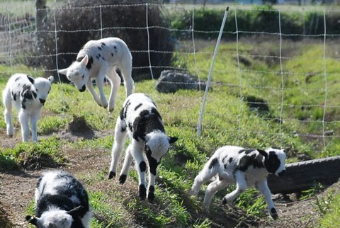 This looks almost gruesome but everyone is just fine. Mom is a yearling, Annette, and delivered a big ram lamb. All 4 horns are prominent already. Most of my yearlings lambed this week.