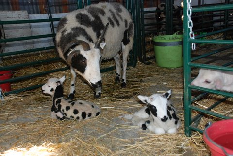 This is Sparkle and her twins waiting while I clear out another jug. She lambed early in the morning.