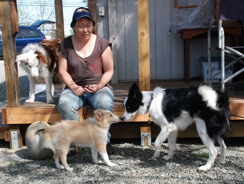 This is Julie with her puppy, Evan. The black and white border collie is Moby, Jackie’s dog. That’s Rusty on the deck.