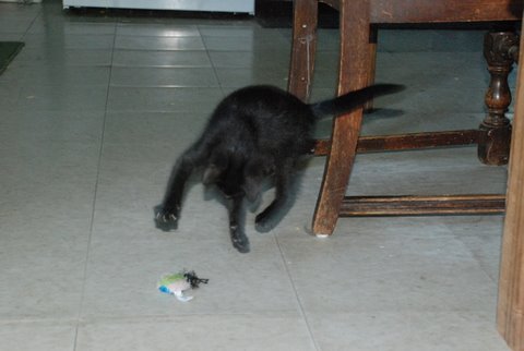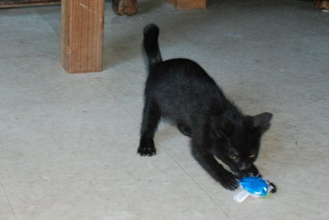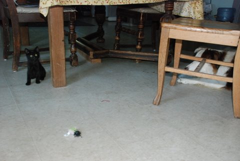 The main issue is dealing with the dogs. Rusty hasn’t shown any aggression. In fact he wants to play. But he’s awfully big compared to this little kitten and I feel like I have to watch constantly. At night I put the kitty in a crate so that I know that everyone is safe.