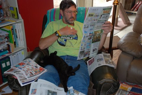 It seemed that a Sunday morning newspaper was a privilege well deserved. Note cat position. It’s hard to get good photos of a black cat.