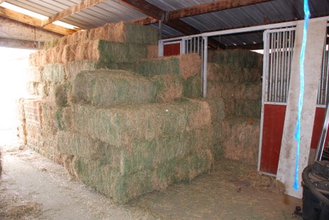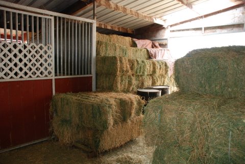 All the hay is in the north end of the barn. (The hay in the stall is left over from last year.)