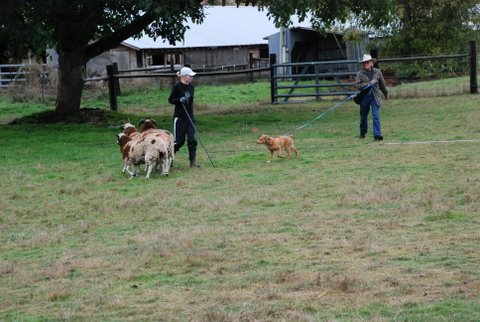 Shannon is giving Joan’s collie, Hank, his first lesson.
