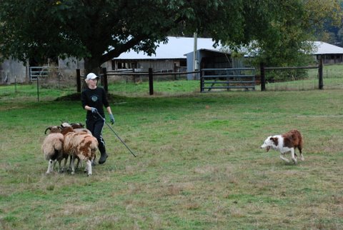 It could be said that Rusty is a little too enthusiastic. But more to the truth is that Rusty has been confused by his handler (that would be me). It was very helpful to work with Shannon because she saw things that I was doing that are counter-productive to the way I’d like Rusty to behave as a sheepdog.