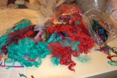 Shannon felted a bowl and several soaps while I worked on my fiber project.