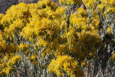 Rabbitbrush in bloom is a colorful contrast to everything else that is so dry and dusty right now.