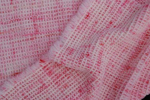 This is the same blanket after going through the washer and dryer.Β The inspiration for this blanket is the following Georgia O’Keefe painting. I started with white yarn and sprinkled dye powder over the yarn to get the varigated shades.