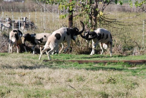 Savor sounds very much like his dad – sorry! He isn’t aggressive with people, but he takes his top spot in the ram pen VERY seriously. Glad to hear that Tioga was ok with the #2 spot. It makes putting the rams together a little less scary. I have to have two ram pastures this winter because I have a small ram with a Napoleon complex that would not be willing to bow down to Wrangler. Glad to hear all is well again 🙂