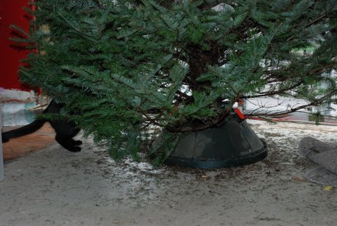 Bad kitty! Posted on December 19, 2010 by Robin This is one method to knock all the dead needles and debris out of the tree! This was yesterday. Now I have lights and garland up. I don’t know about ornaments this year. Share this: Click to email a link to a friend (Opens in new window) Email Click to share on Facebook (Opens in new window) Facebook Click to share on Pinterest (Opens in new window) Pinterest Like Loading... Related