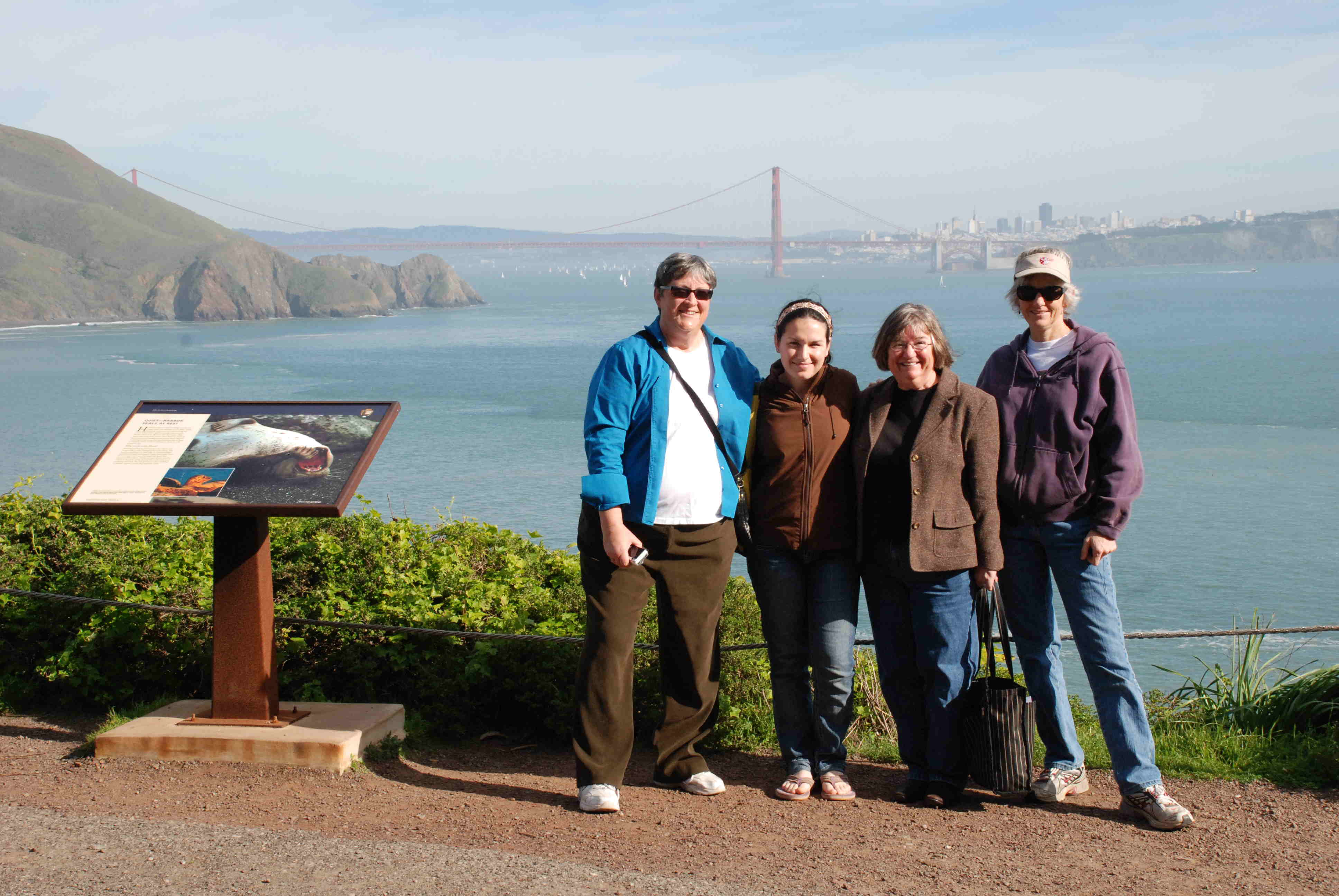 We drove from Napa to 101 and then turned south. We took the last exit before the Golden Gate Bridge and drove through the Marin Headlands, part of the Golden Gate National Recreation Area. First stop was to get out and look over the cliffs to see sea lions below. Can you believe that view?