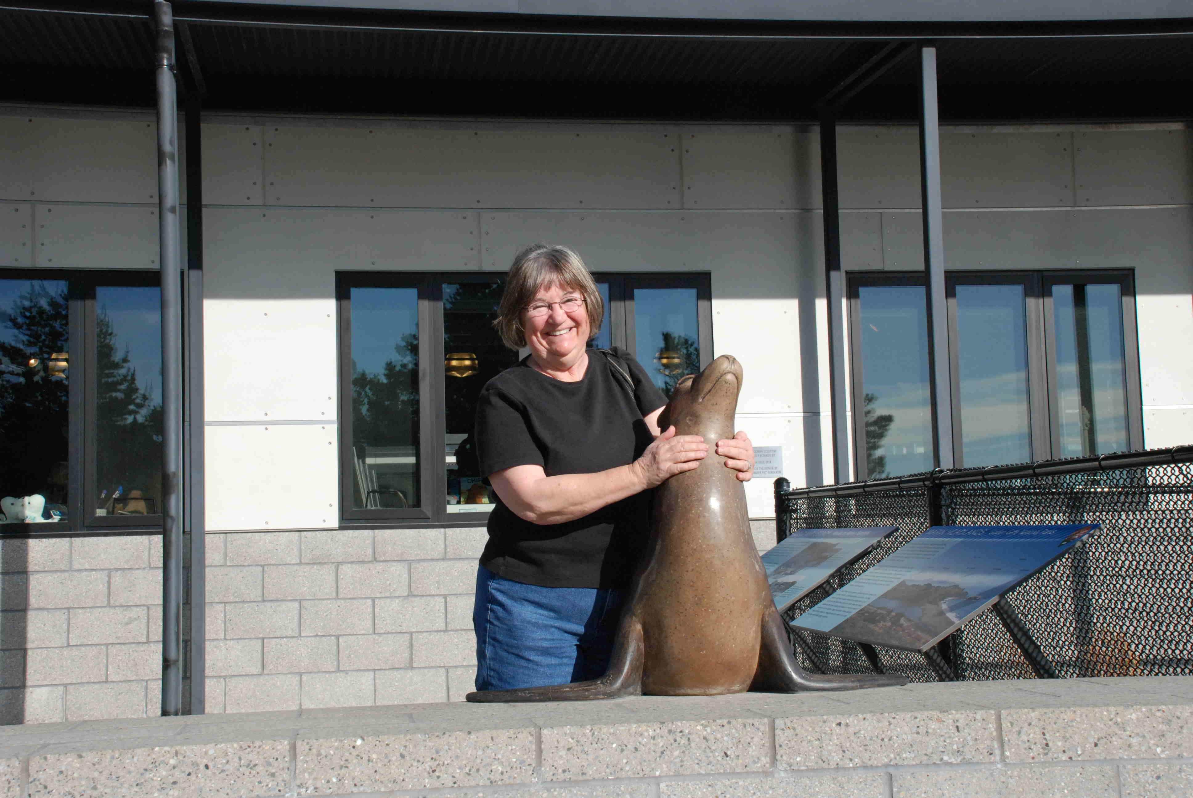 The next stop was the Marine Mammal Center. There were only a few sea lions there right now but we were told that the place would be full in the next month or so because it’s almost birthing season for sea lions. (Is that calving?) The goal here is to heal the animals brought here and then send them back out to sea. Do you think Kathy wants to trade her goats for one of these?