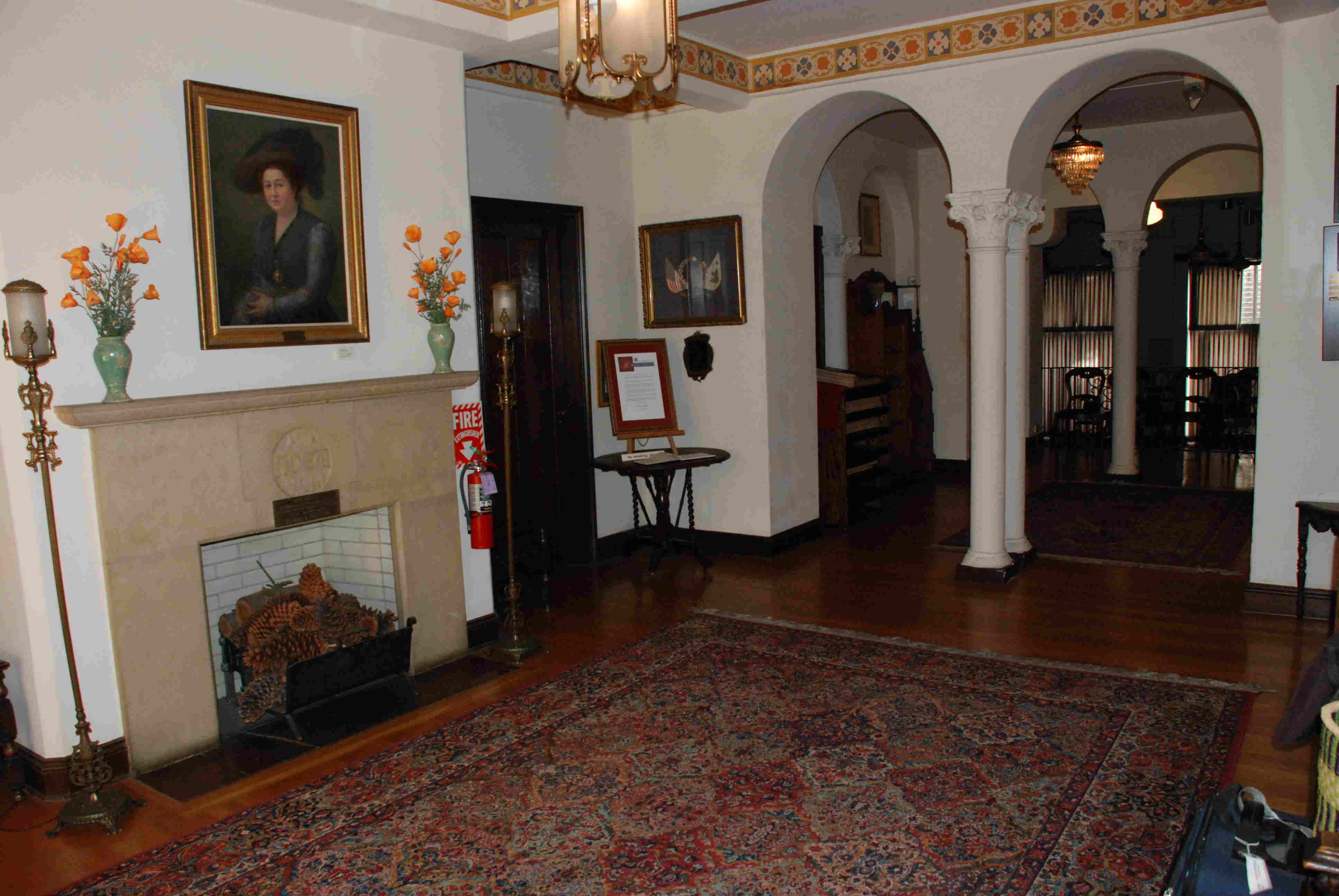 This is the entrance hall to the NDGW Home. I can’t remember the name of the lady on the wall, but she is the resident ghost of the home. It’s hard to describe this home. It was built and is now maintained “for aid and comfort of NDGW members”. There are 27 (?) bedrooms, a huge kitchen, dining room, meeting room, atrium, magnificent parlor, pioneer archives, museum and it’s all available for members to use for a nominal fee. Wow! A place of sanctuary in the big city. The NDGW raises money for a variety of worthy causes besides maintaining the home–scholarships, children’s medical care, preservation of the CA missions, maintaining a pioneer roster, etc. Members must be born in California. I’m a 4th generation Californian and I’m going to sign up!