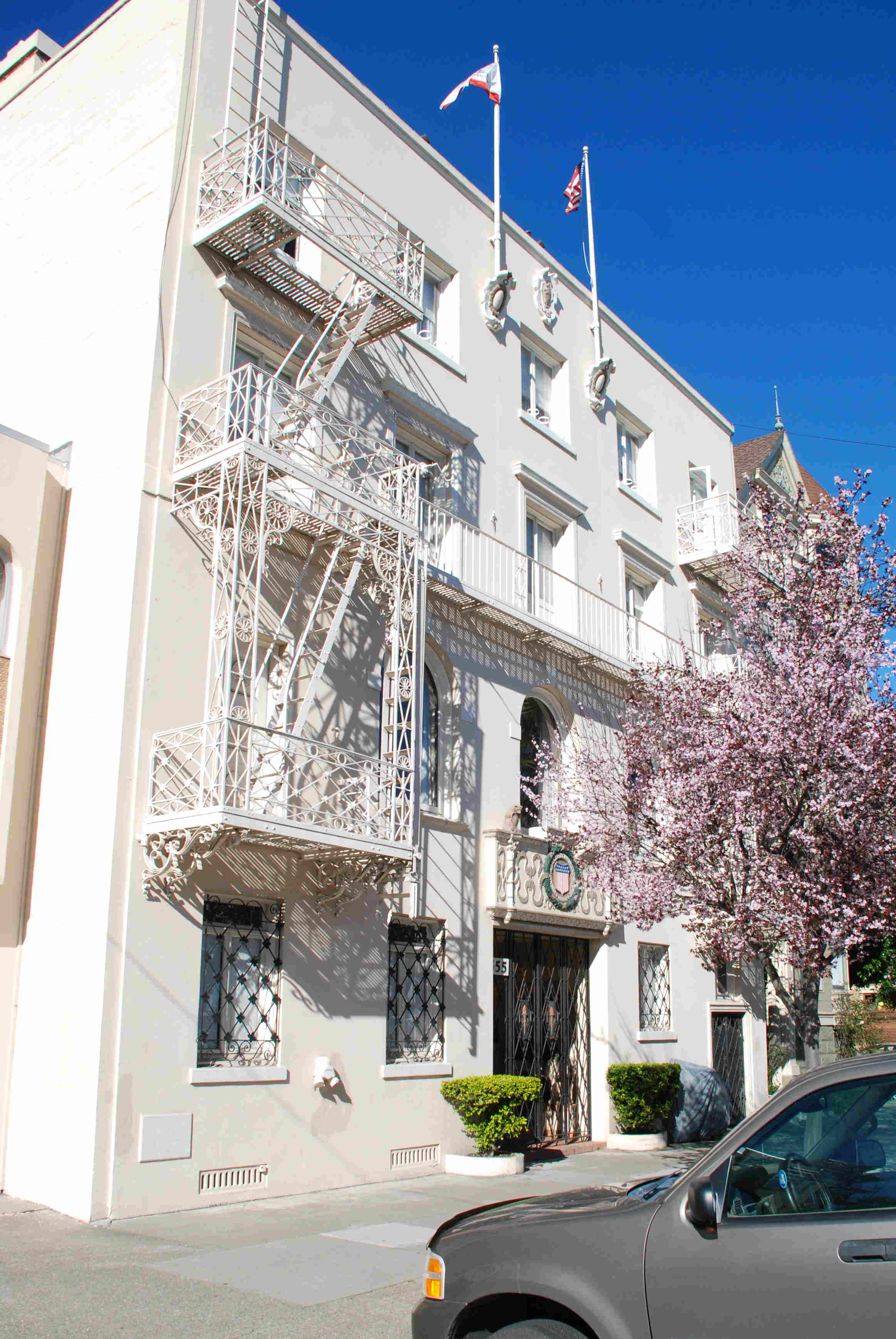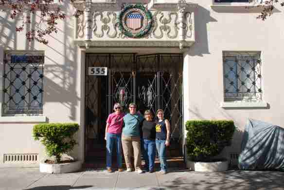 After a brief side trip to a yarn shop in Sausolito so that Kathy wouldn’t be the only one without a knitting project we drove into San Francisco and arrived at the Home on Baker Street. This home was designed by Julia Morgan, who also designed Hearst Castle, and built in 1928.