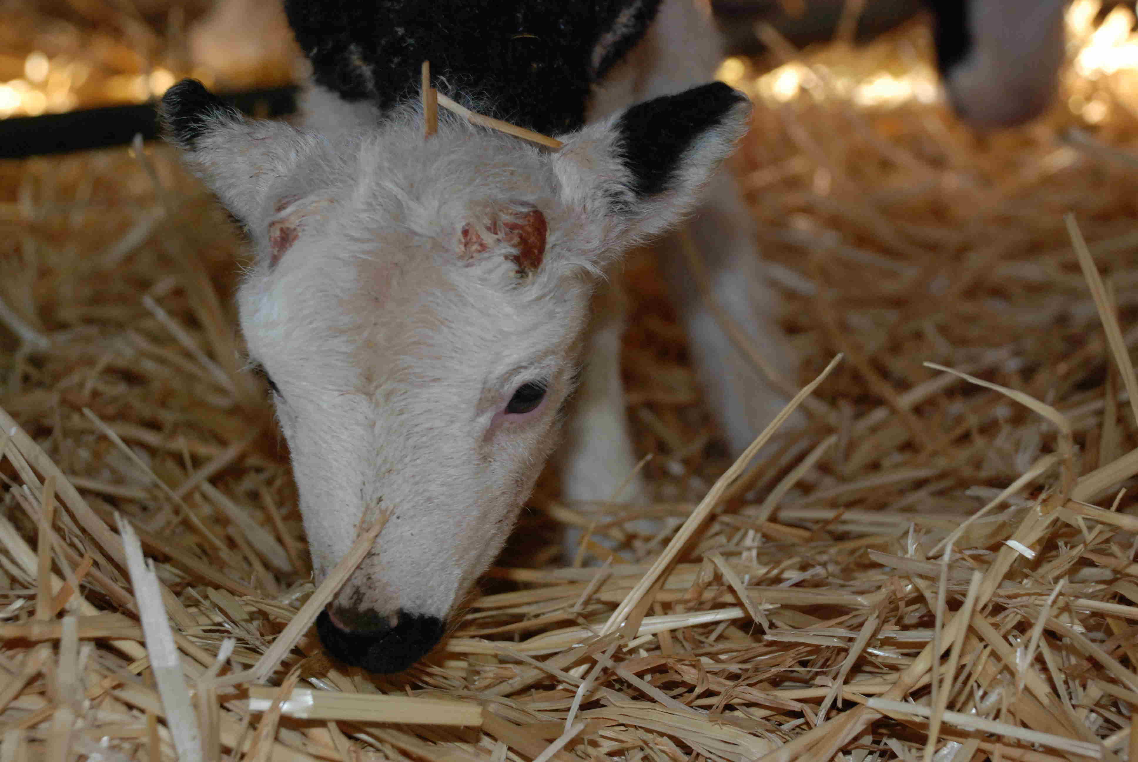 Moon had twin ewe lambs this afternoon. This lamb was very striking after she was clean and dry–sparkling white and none of the coarser  birth coat that Jacob lambs are often born with.