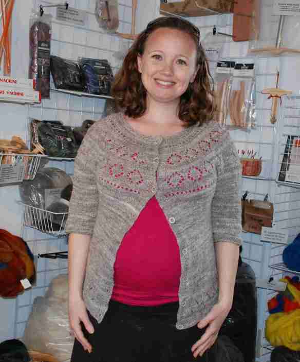 This is Marissa who modeled her first sweater made of handspun yarn, from Jacob wool of course.