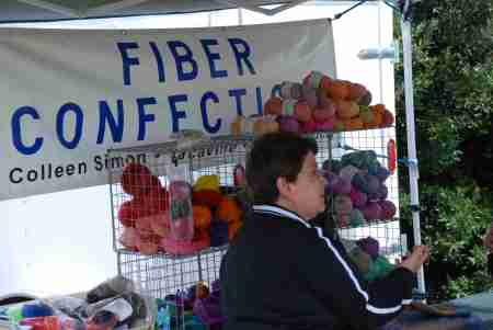 Colleen skipped Saturday at he Farmer’s Market to bring her Fiber Confections booth here.