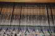 This is the warp on the loom. I was concerned that the white weft was going make the shawl too white. No need to worry. It came out just right.