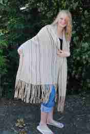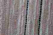 In this close-up you can see the variety of yarns used in the warp. The weft is relatively fine with a regular slub that helps keep the yarns in place even though the shawl is loosely woven.