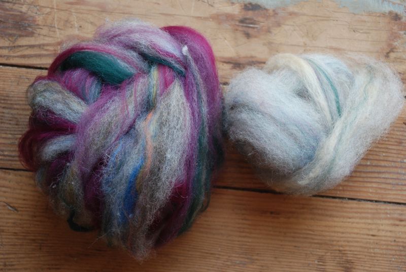 I taught a carding class this morning. The participants created roving by combining 3 multi-colored batts and also carded blends of wool and alpaca and silk.