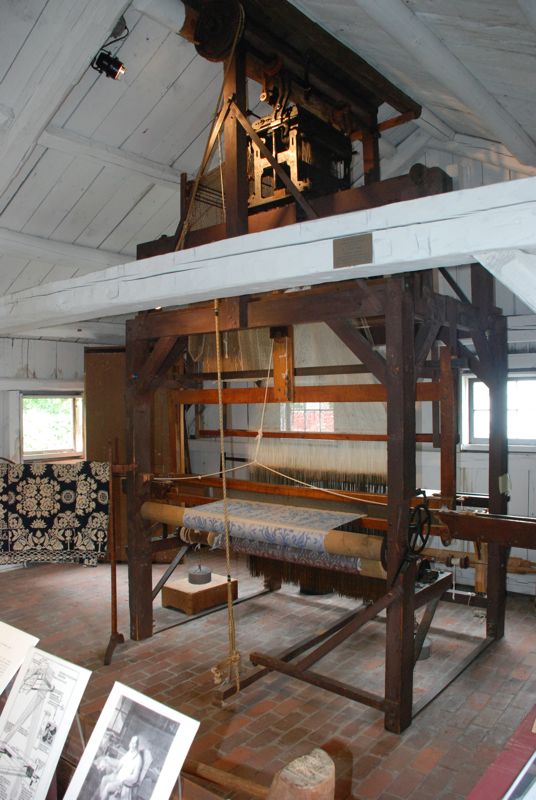 How about a two-handed spinning wheel? There are two bobbins and the docent told us that one person used this wheel to spin two bobbins at a time.