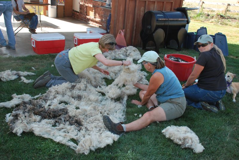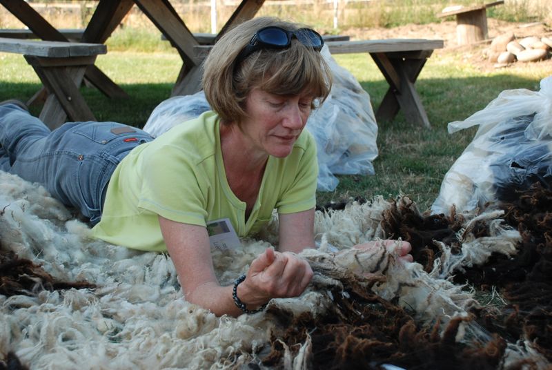 This is Doug Montgomery evaluating fleeces in the wool show.