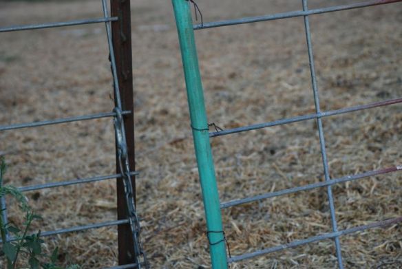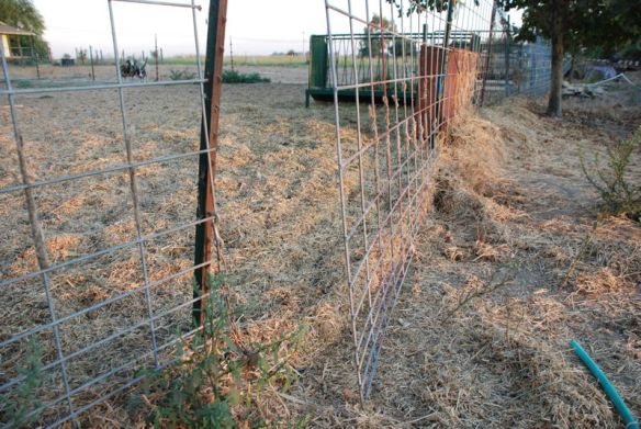 This may look like a gate, but it is not. It is a welded wire panel that I open to get in this pen. A gate has hinges and it swings. But enough of that. This panel has to act like a gate in that I need to be able to get into the pen and let my dog into the pen. Here is another view of the panel.