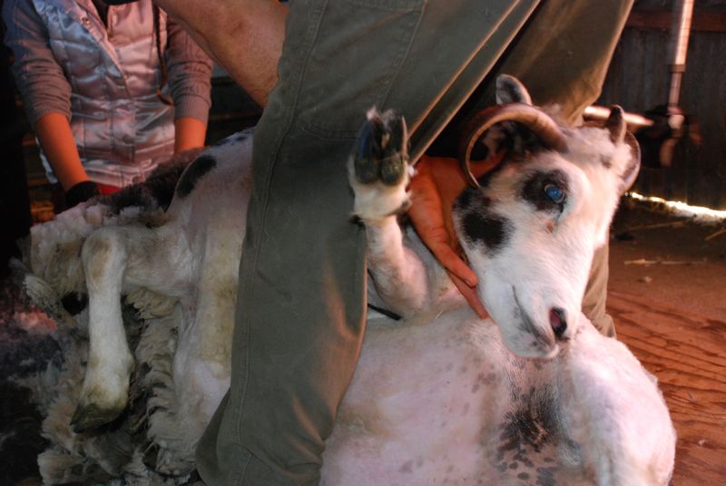 My friend, Colleen, brought her sheep for shearing. This is her ram, Razor.