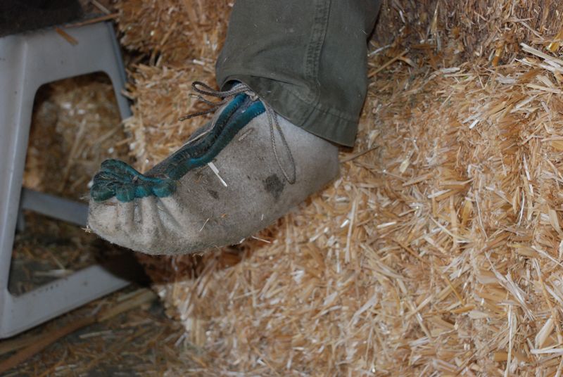 This is one of John’s wool shearing shoes. It is made of thick felt.