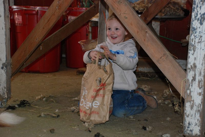 Look at this face under the skirting table. James was happy to scoop up wool that fell through the slats. He spent most of his time playing in the new sand we got for the parking area.