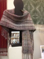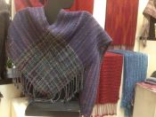 A v-shawl I wove with handspun yarn. I wore this one at Black Sheep Gathering in the Spinners Lead.