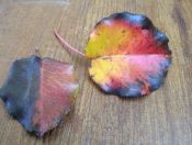 As I was walking to my car I picked up these leaves. The colors reminded me of the last batch of scarves that I wove. However, they don’t look very brilliant in this photo. (I am happy with my new i-phone, but the photos are lacking something in the color–I feel like I’m looking through fog. Anyone else have that issue? I think I need to go back to the store and talk to someone.)