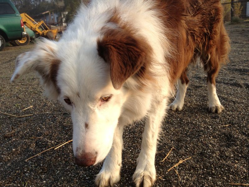 And, of course, Rusty is out here with me–staring at shadows.