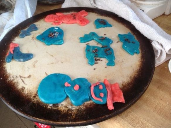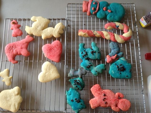Chris and Meryl wanted to make Christmas cookies. They discovered that it didn’t work with chocolate chip cookie dough (although that didn’t stop us from eating the cookies). Next batch was using a more traditional recipe.