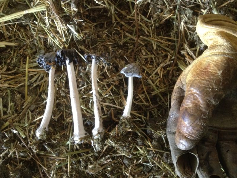 This pen had flooded a month or so ago and all that old straw was wet. Look at all those mushrooms. I was glad that my friend, Jackie, was coming over in a little while because I knew that she would be excited about mushrooms.