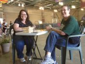 Farm Club members, Mary and Dona, cutting up temporary tattoos for give away.