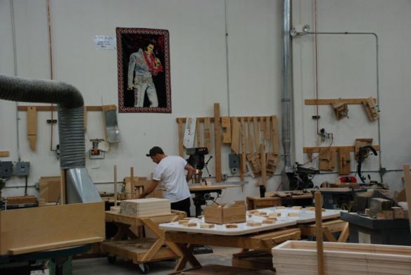 Work is done under the watchful eye of Elvis. (There is a sentimental story behind this.)