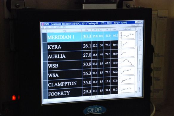 This is the information you get from the scans. I usually send in wool samples for all my yearlings so that I have micron data for each sheep at a consistent age. When they are sent to the lab you get this data back in printed format.