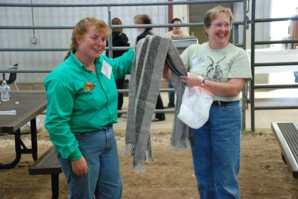 After dinner there was a brief meeting and presentation of a Jacob wool shawl (made by me) to Jennifer, who organized the event.