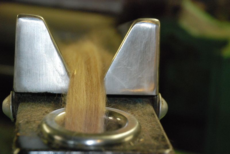 Lonesome Stone is a favorite of alpaca growers, but they also process wool and any other fibers. When a producer sends raw fiber it is scoured, picked, carded, pin-drafted, spun, and plied. The yarn produced is beautiful. This is carded fiber going into the pin-drafter and coming out…