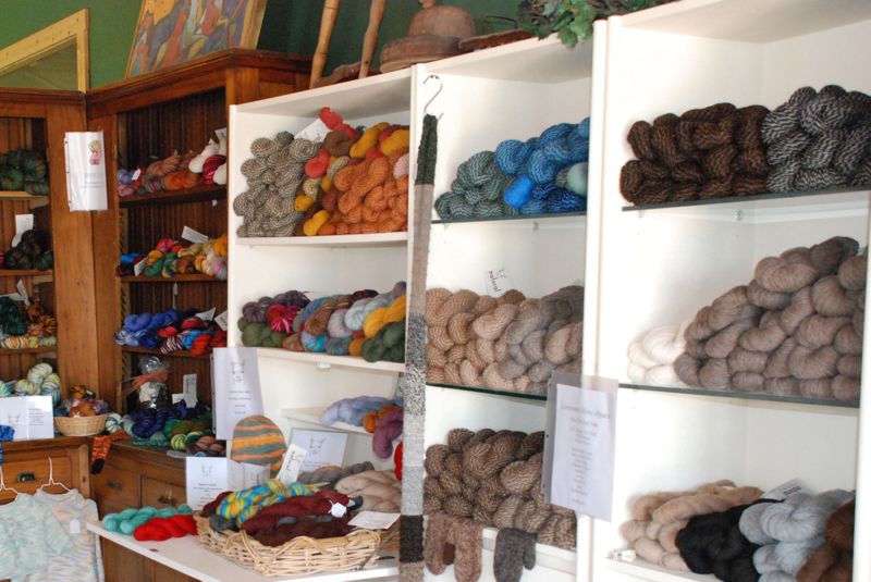This is a corner of the store where the finished yarn is sold. Oh, did I say that Lonesome Stone also dyes the yarn?