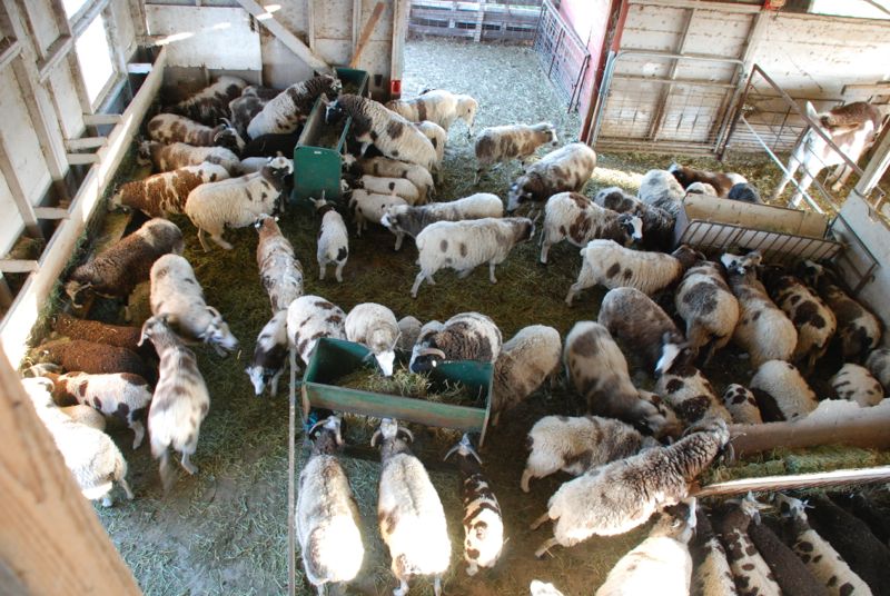 View from the barn looking south. I irrigated yesterday so the sheep are all locked in to the barn area. Normally they would be in the pasture, which is strip grazed using electric fence.