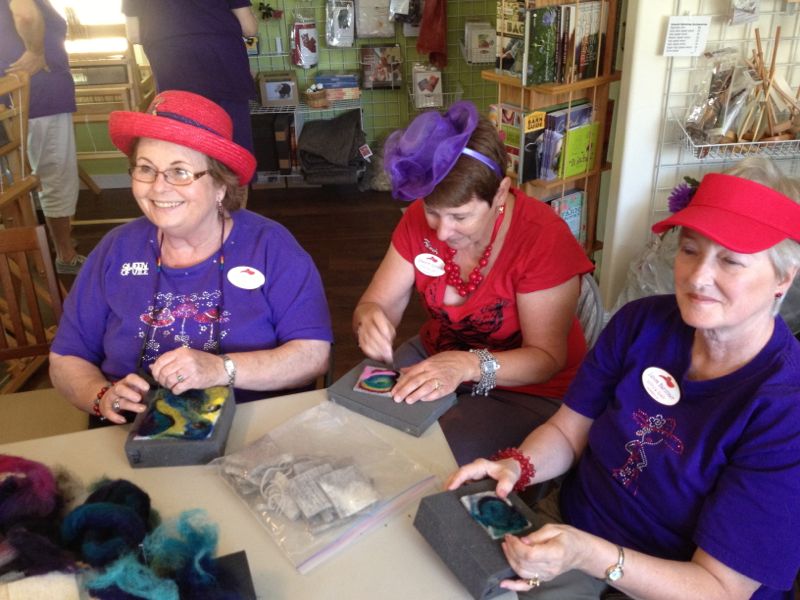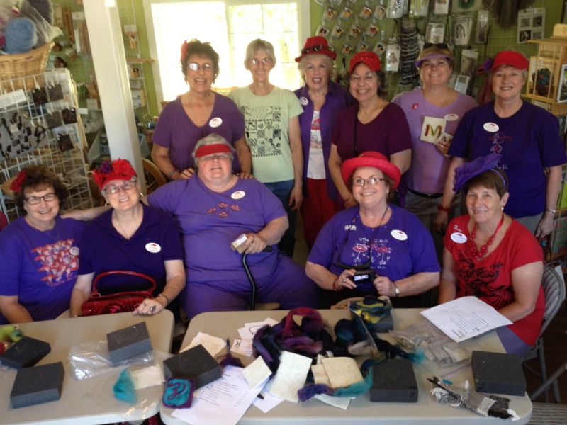 There was a fun field trip here today. About ten women from the Red Hat Society chapter in Sacramento came for the morning. We started out in the barn visiting the sheep and Amaryllis, but I didn’t get any photos. I did get photos of Rusty showing off sheep herding skills, but he will use those in his blog.