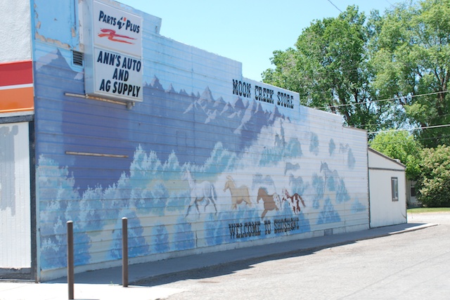 Horse mural in Shoshone, ID, taken quickly from the truck window.
