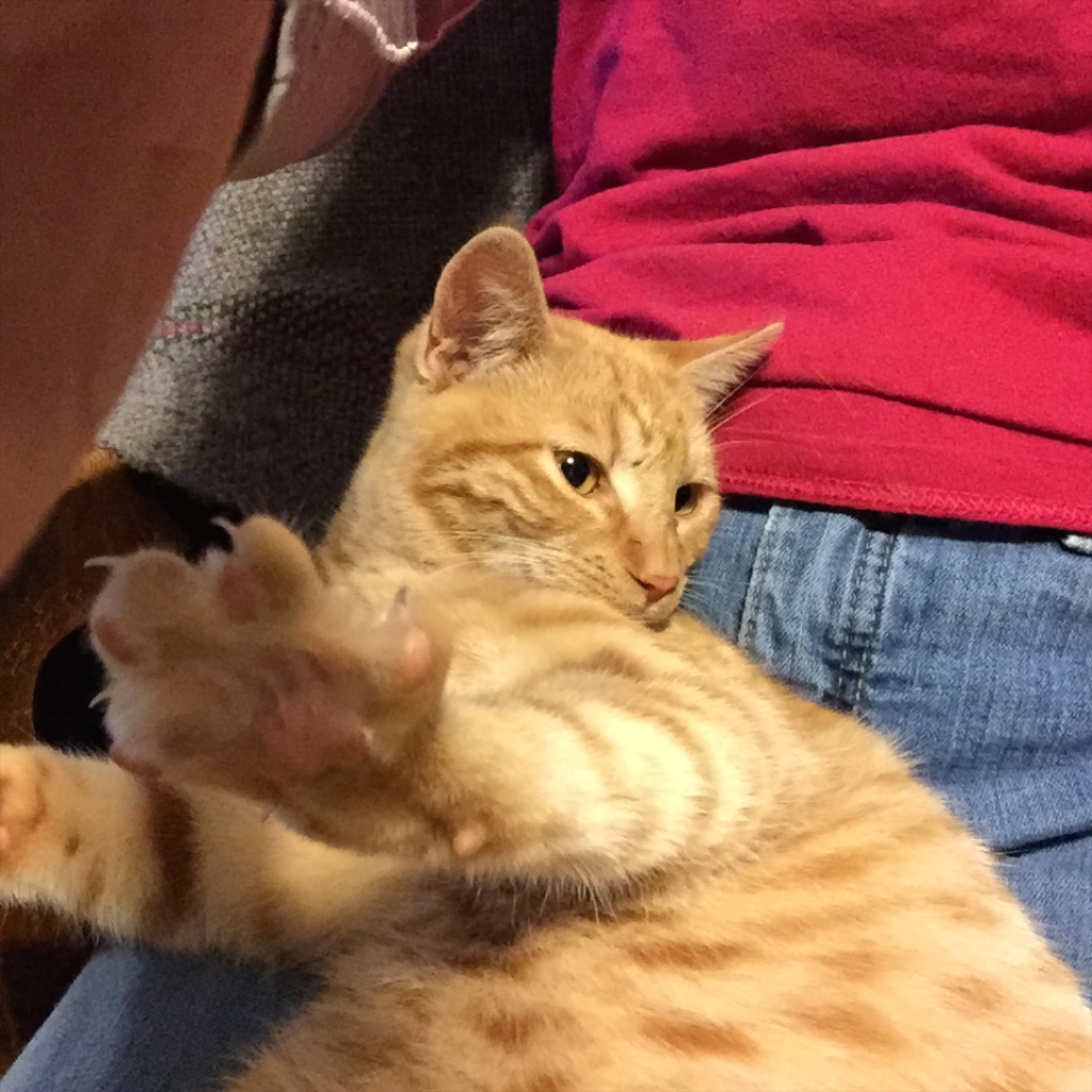 What a sweet marmalade kitty! (I had an orange tabby, may he rest in peace over the Rainbow Bridge; he was a Maine Coon-sized short-haired love bug.)