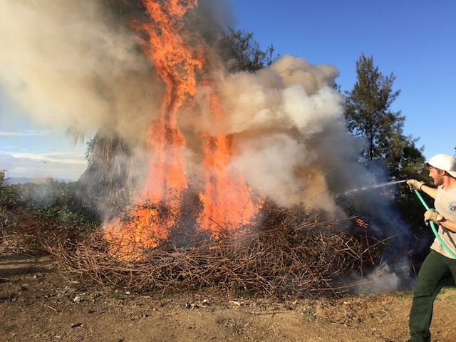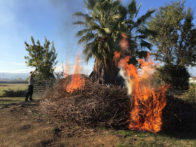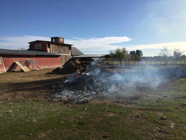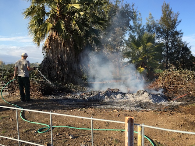 Chris dug a line around it and we let it smolder all night. This is the next morning. The other pile was smoking even two days later and after a light rain.