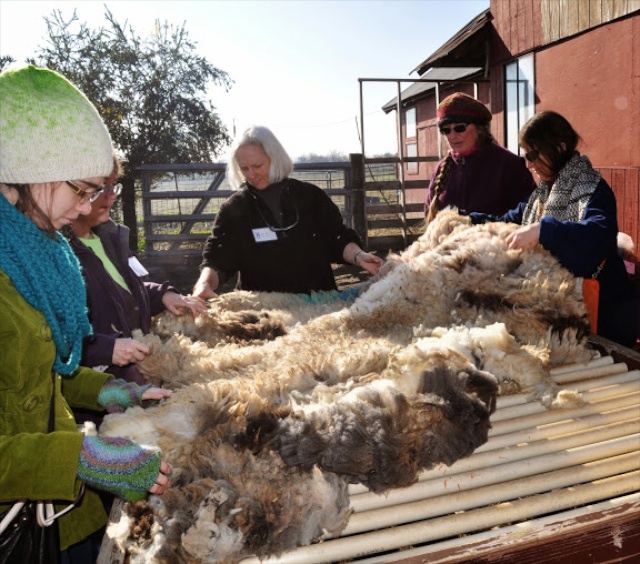Amaryllis was grateful to NOT be part of the action.DSC_0724 After shearing there was still time for FC members to do additional fleece shopping…DSC_0753…and other shopping.  DSC_0759-1 (1)Lisa was one of many FC members who helped in the shop so that I could spend time in the barn.