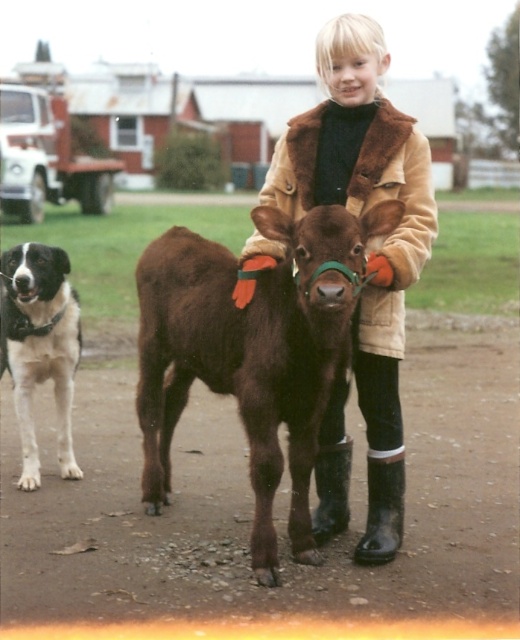 This is Katie, about 6 years old, and Sequoia, a calf who was born prematurely and I raised on the back porch for months. That’s my first Border Collie, Flash.