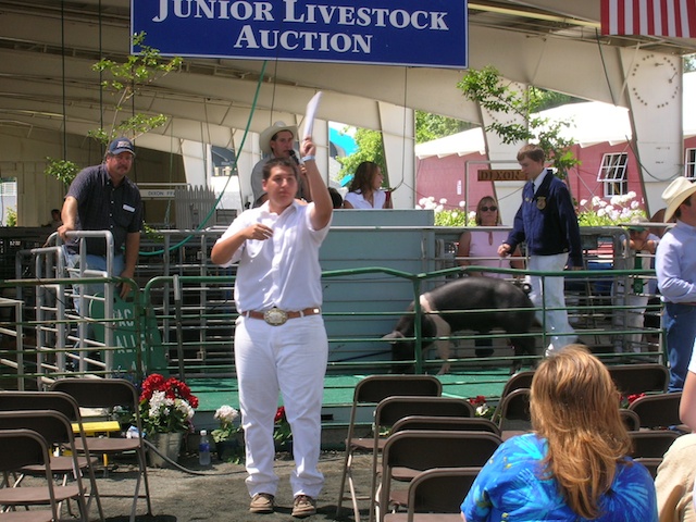 Chris selling a hog at the auction at the Solano County Fair. He looks young–maybe a sophomore?