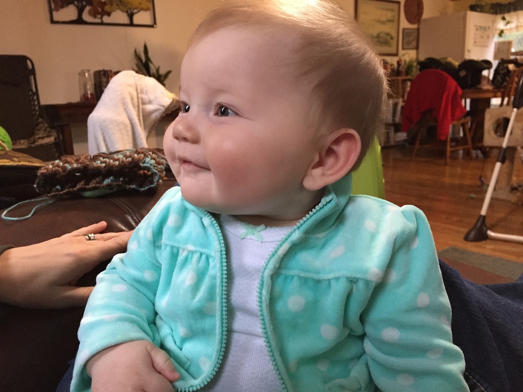 This is what I did for the last 5 days. These are just my i-phone photos and it was hard to narrow it down. I still have the other photos to go through.IMG_1431 IMG_1433 First taste of yogurt. Not a big fan.IMG_1442 IMG_1464 IMG_1472 Helping in the kitchen while I made cookies.IMG_1480 IMG_1487 Sleeping on Mama’s lap. IMG_1493 IMG_1507 Carrots are better than yogurt.IMG_1513 IMG_1523 IMG_1548 Ready for the Superbowl.IMG_1567 Asleep with me.IMG_1570 IMG_1602Trying to catch a ride home with me.